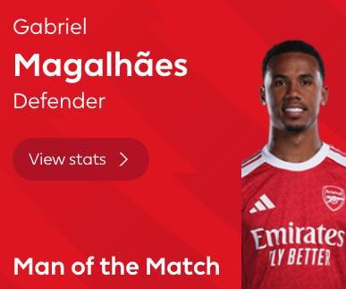 攻防俱佳,加布里埃尔当选伯恩利vs阿森纳全场最佳球员